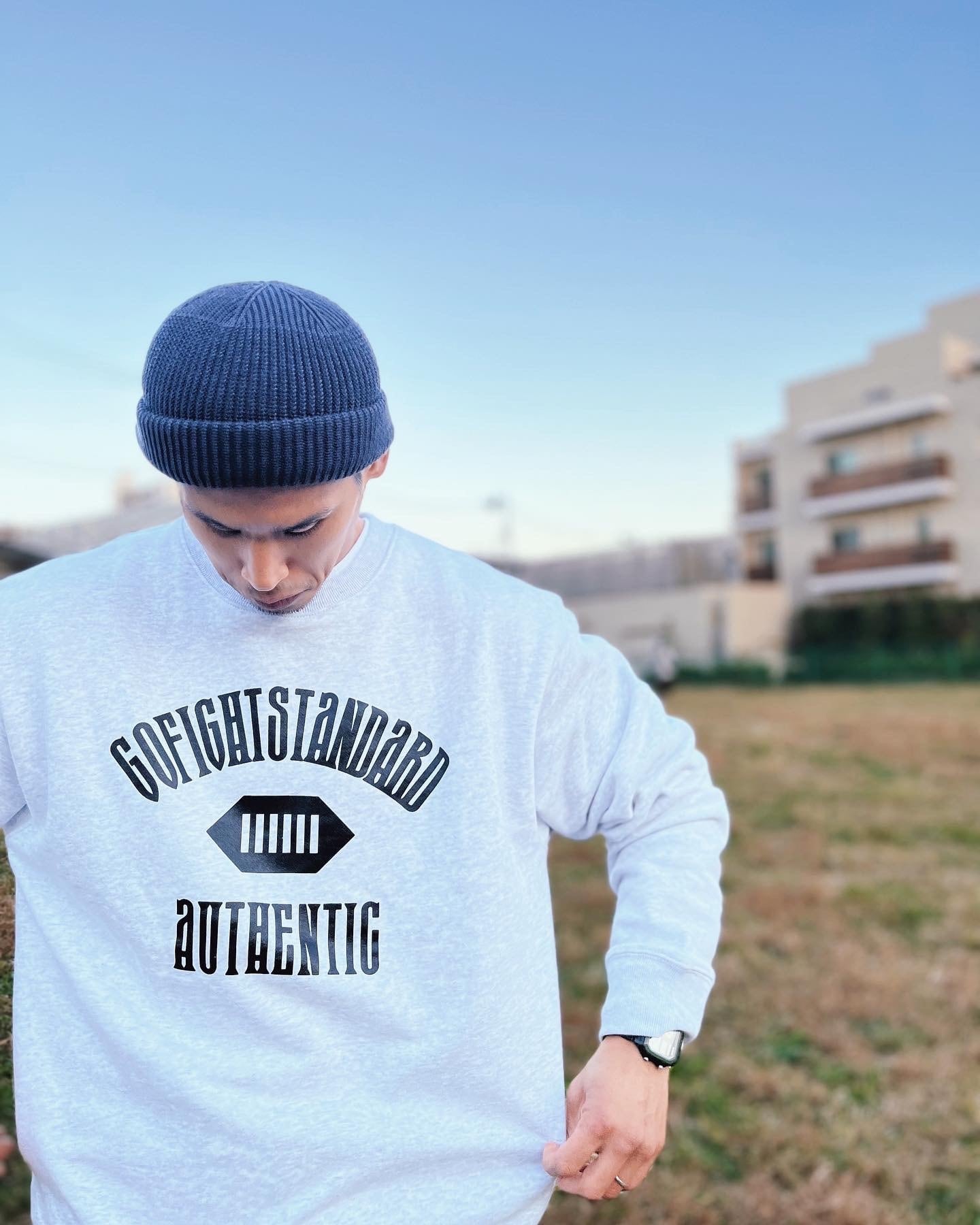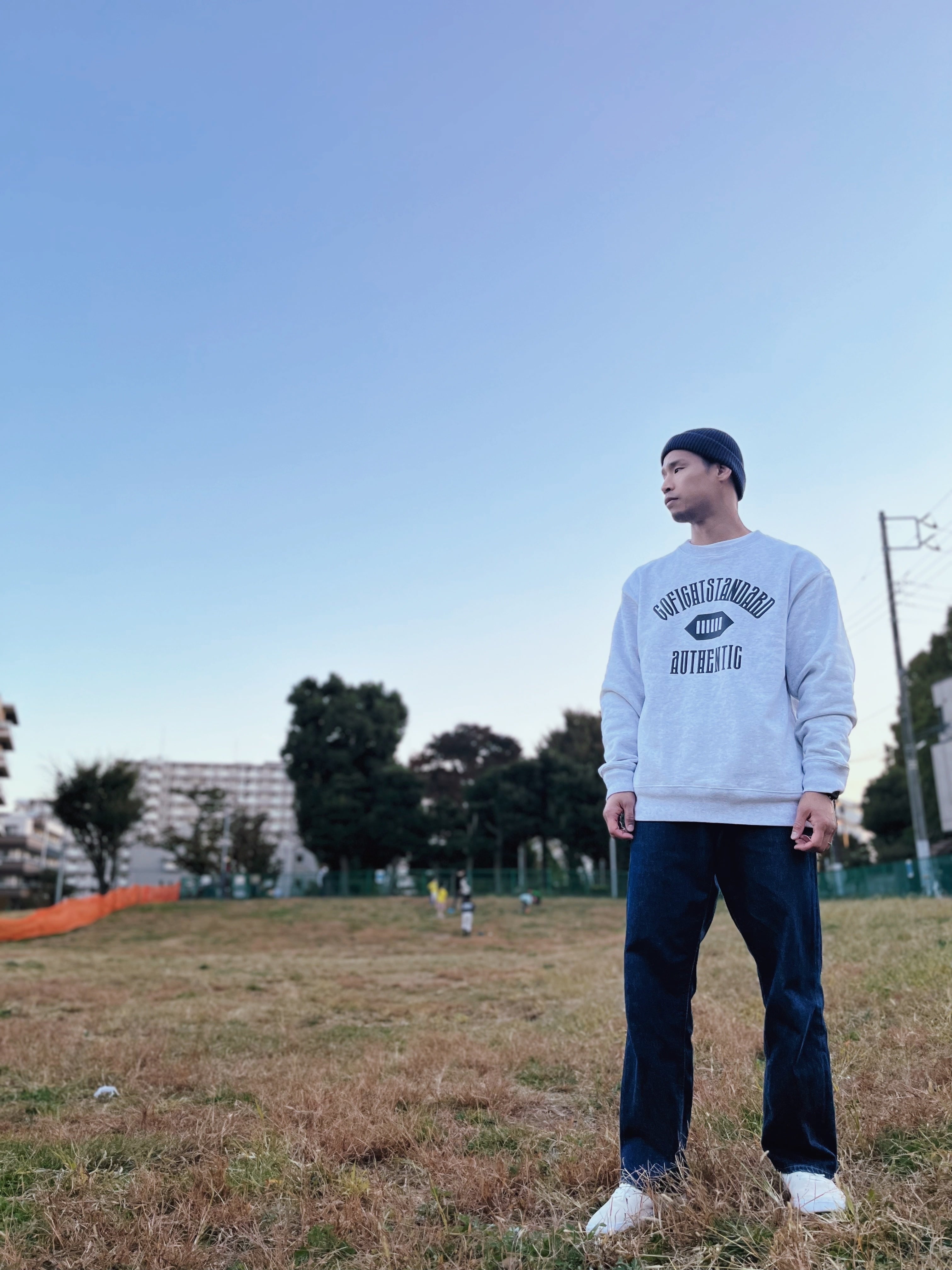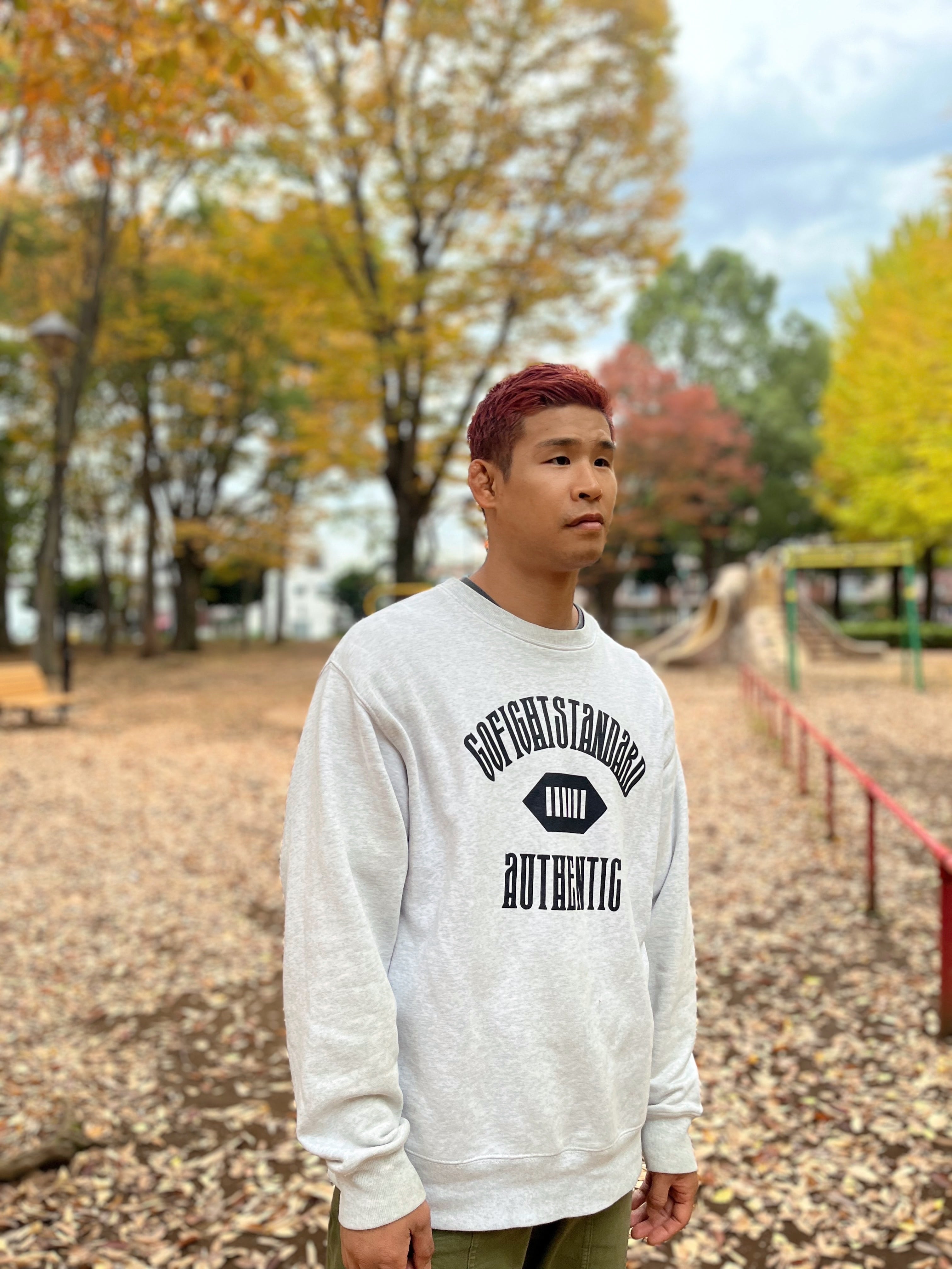 スウェットに入れたAUTHENTICの意味。オーセンティックとは本物や正真正銘のと言った意味があり、まがいものではない格闘家(人間)になるために。というメッセージを込めました。