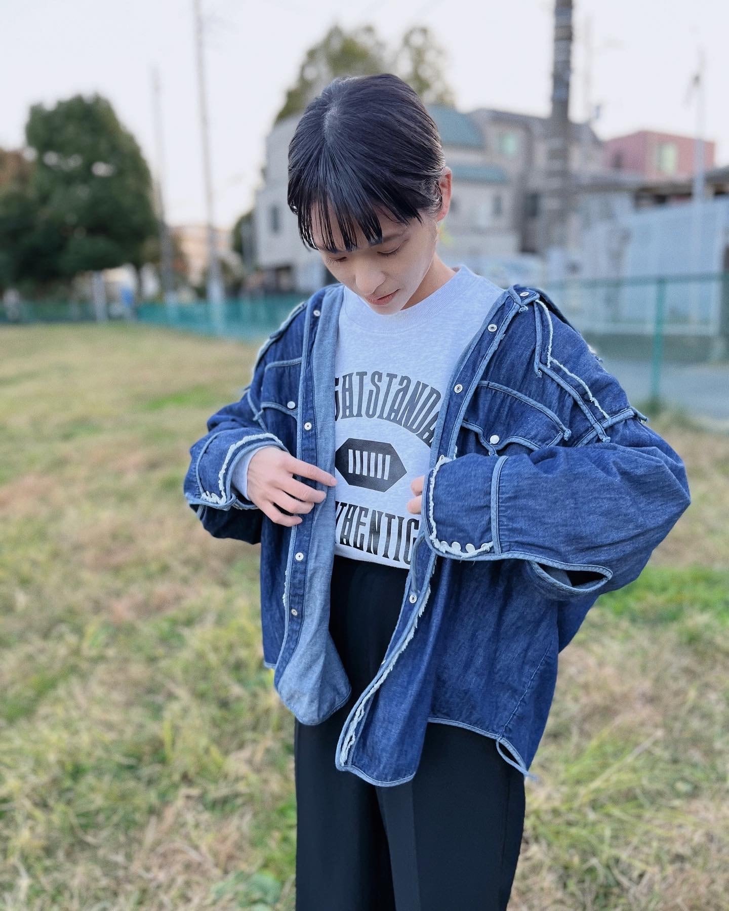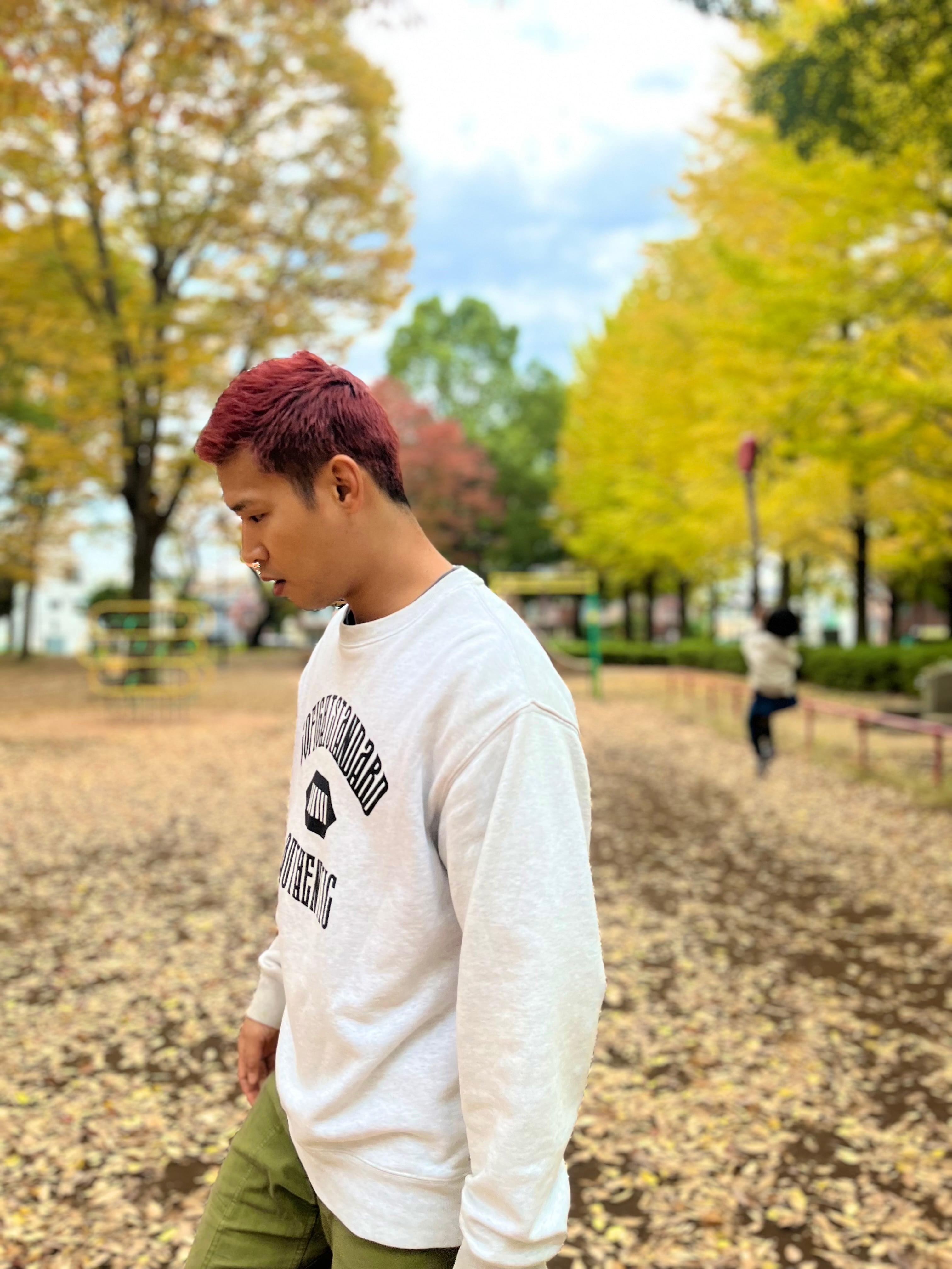 オーバーサイズまでいかないが、やや大きめのシルエットで作られおり、裏パイルなので快適な着心地を与えてくれる。12.7オンスの重厚感のある生地なのでこれ一枚で雰囲気を出してくれる存在感のあるスウェットシャツです。